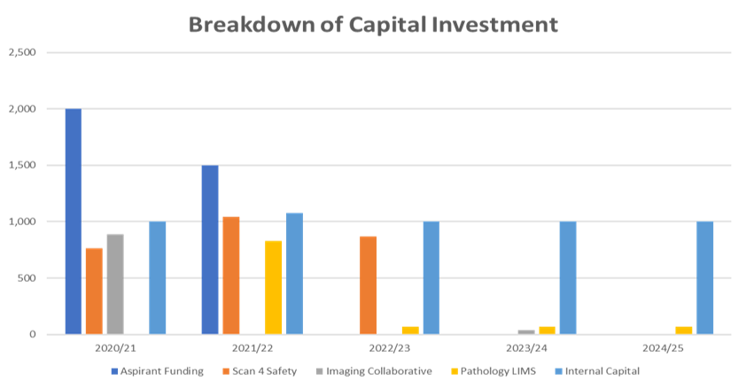 The Digital Aspirant funding has a mixture between Capital and Revenue which reflects this changing nature of expenditure. Whilst CHFT is a leader in the use of digital technologies in the provision of healthcare across the UK, further investment is required to both maintain this position but more importantly to continue to push the boundaries and to deliver further benefits to patients and colleagues.